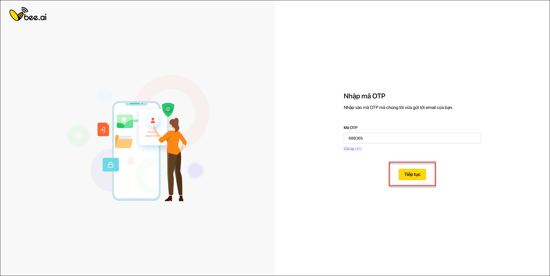 Nếu người dùng chưa nhận được mã OTP, vui lòng nhấn vào textlink Gửi lại để nhận lại mã OTP.